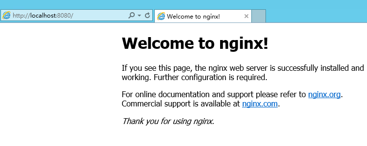 開(kāi)瀏覽器,輸入地址:http://localhost:8080 (因?yàn)槲覀兦懊媾渲昧?080端口),訪問(wèn)頁(yè)面,出現(xiàn)如下頁(yè)面表示訪問(wèn)成功。