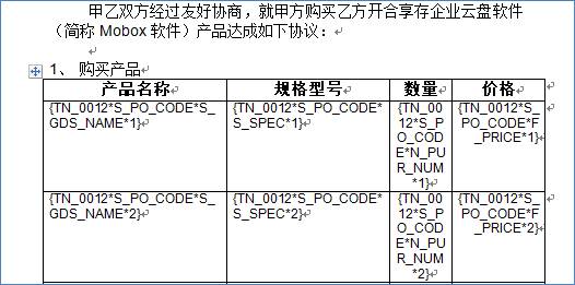 其中,購買產品是一個采購清單,屬于合同的關聯表,其變量定義解釋